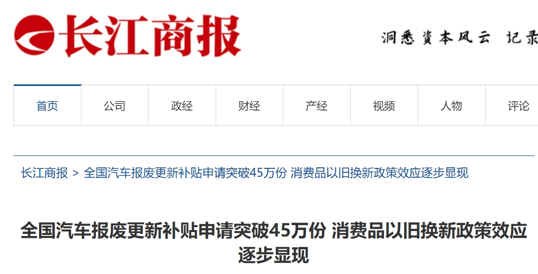 全國(guó)汽車報(bào)廢更新補(bǔ)貼申請(qǐng)突破45萬(wàn)份