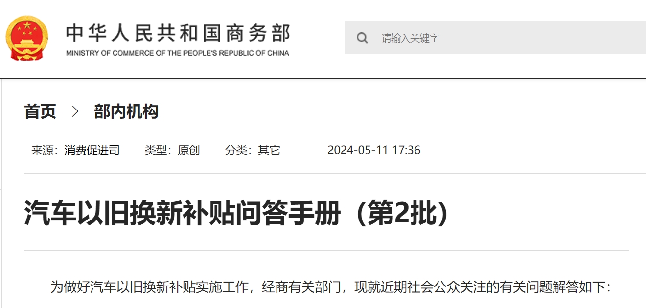 商務(wù)部:汽車(chē)以舊換新補(bǔ)貼問(wèn)答手冊(cè)(第2批)