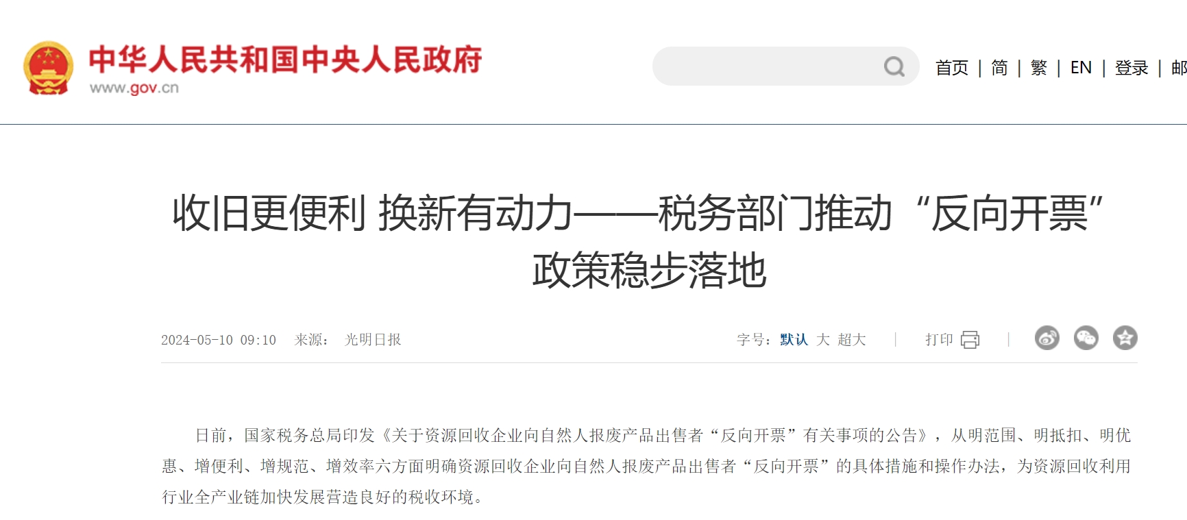 資源回收企業(yè)“反向開(kāi)票”政策要點(diǎn)
