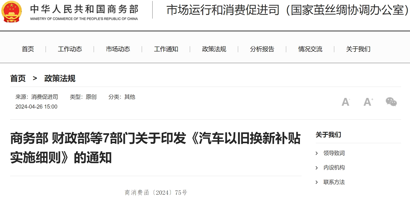 商務(wù)部財(cái)務(wù)部等7部門關(guān)于印發(fā)《汽車以舊換新補(bǔ)貼實(shí)施細(xì)則》的通知