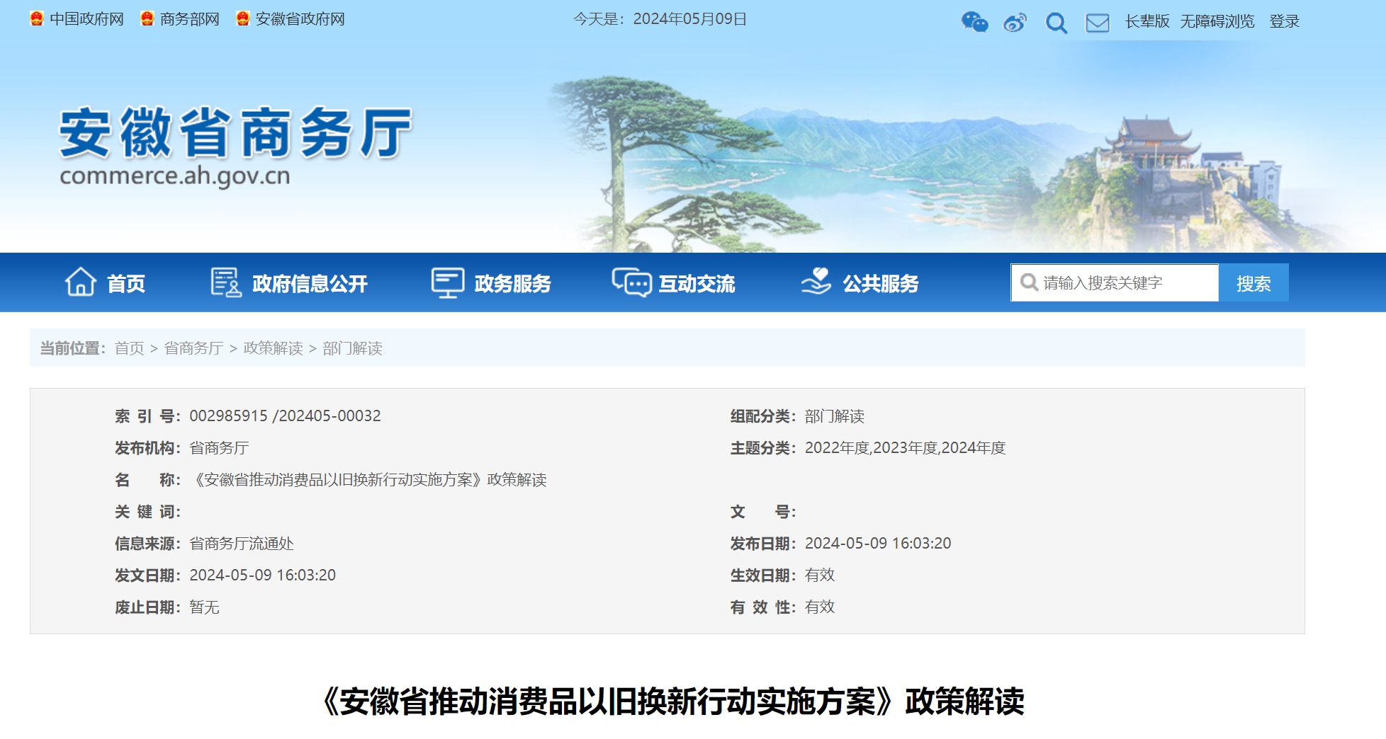 《安徽省推動(dòng)消費(fèi)品以舊換新行動(dòng)實(shí)施方案》政策解讀