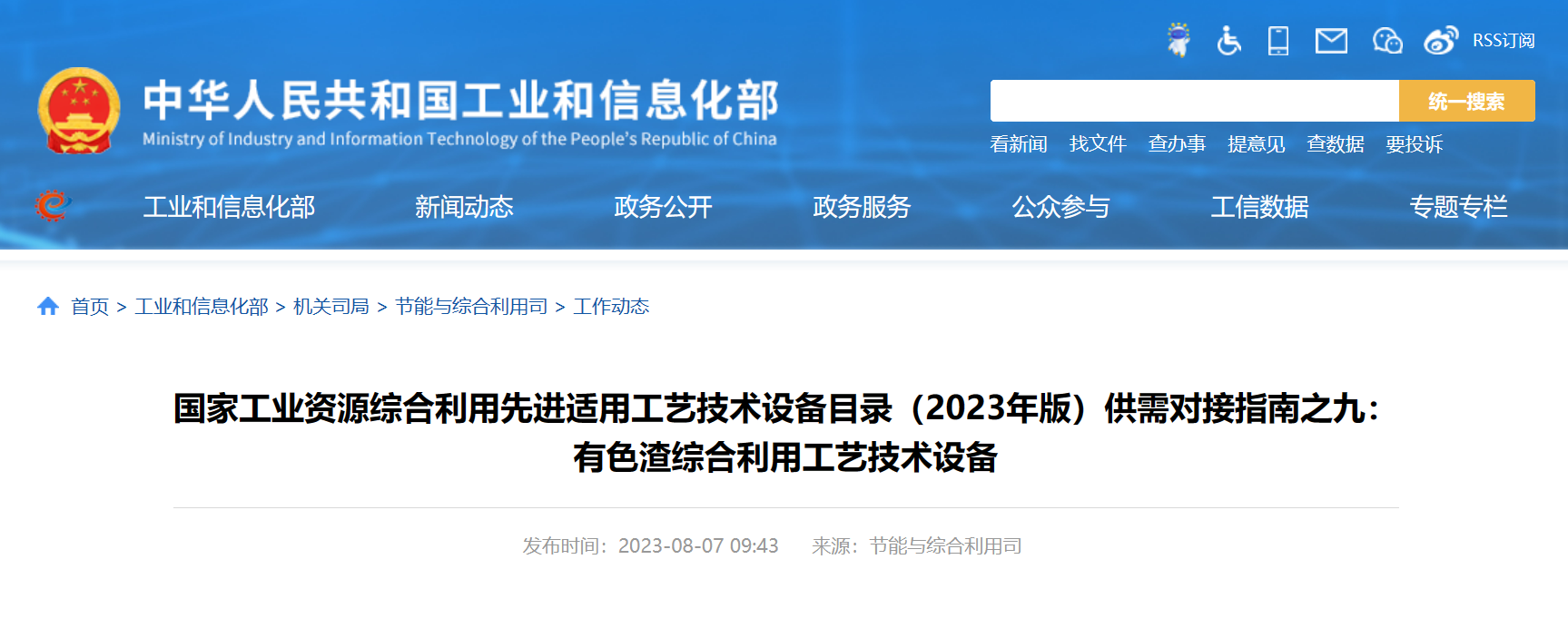 國家工業(yè)資源綜合利用先進(jìn)適用工藝技術(shù)設(shè)備目錄(2023年版)供需對(duì)接指南之九:有色渣綜合利用工藝技術(shù)設(shè)備