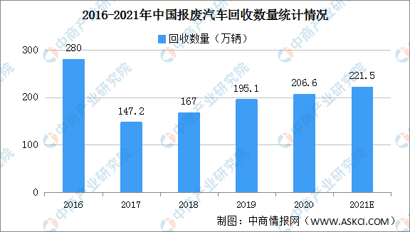 報(bào)廢汽車是典型的綜合型再生資源,報(bào)廢汽車拆解回收可以促進(jìn)節(jié)能減排。在碳中和背景下,我國(guó)報(bào)廢汽車拆解市場(chǎng)潛力大。按照每輛車拆解價(jià)值1萬(wàn)元進(jìn)行計(jì)算,報(bào)廢車回收拆解行...