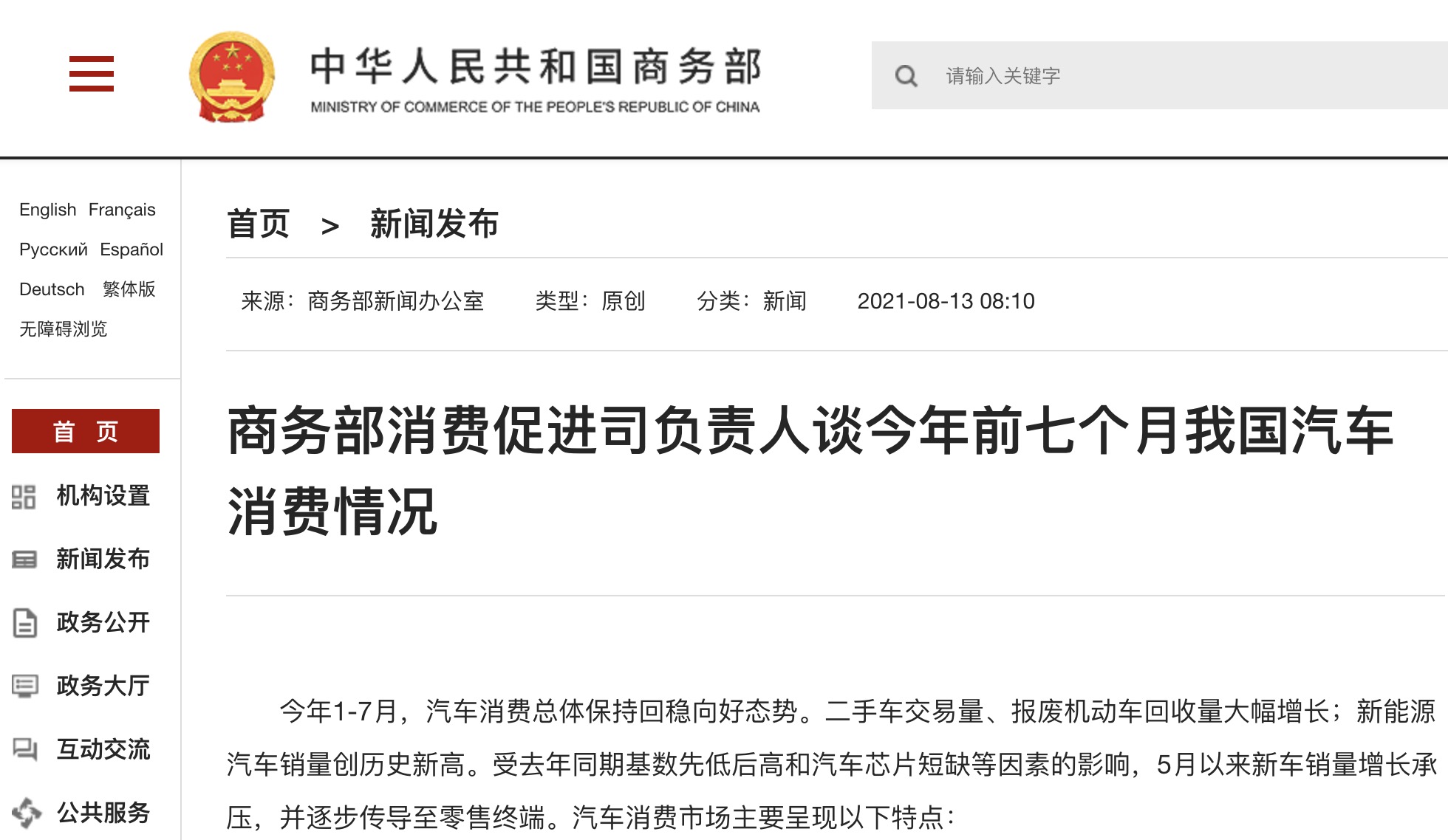 今年1-7月,汽車消費總體保持回穩(wěn)向好態(tài)勢。二手車交易量、報廢機動車回收量大幅增長;新能源汽車銷量創(chuàng)歷史新高。受去年同期基數先低后高和汽車芯片短缺等因素的影響,...