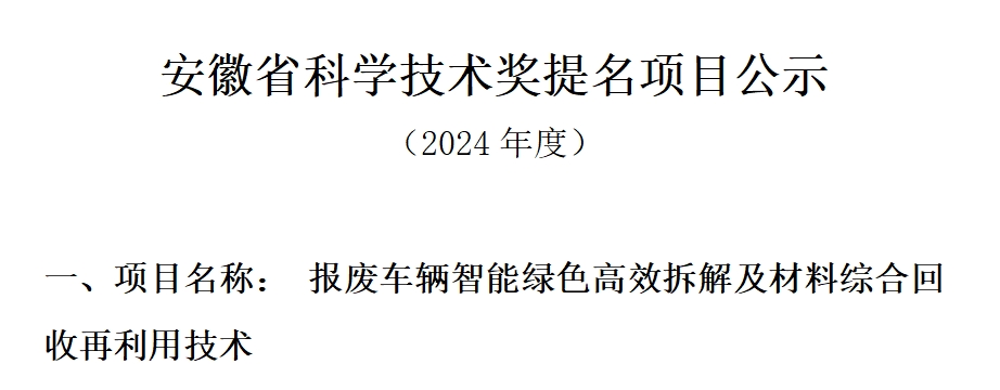 2024年度安徽省科學(xué)技術(shù)獎(jiǎng)提名項(xiàng)目公示材料