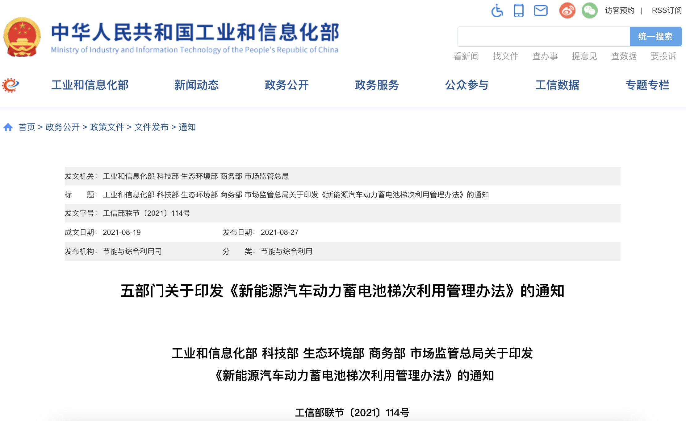 為加強(qiáng)新能源汽車動(dòng)力蓄電池梯次利用管理,提升資源綜合利用水平,保障梯次利用電池產(chǎn)品的質(zhì)量,工業(yè)和信息化部、科技部、生態(tài)環(huán)境部、商務(wù)部、市場(chǎng)監(jiān)管總局聯(lián)合制定了《新...