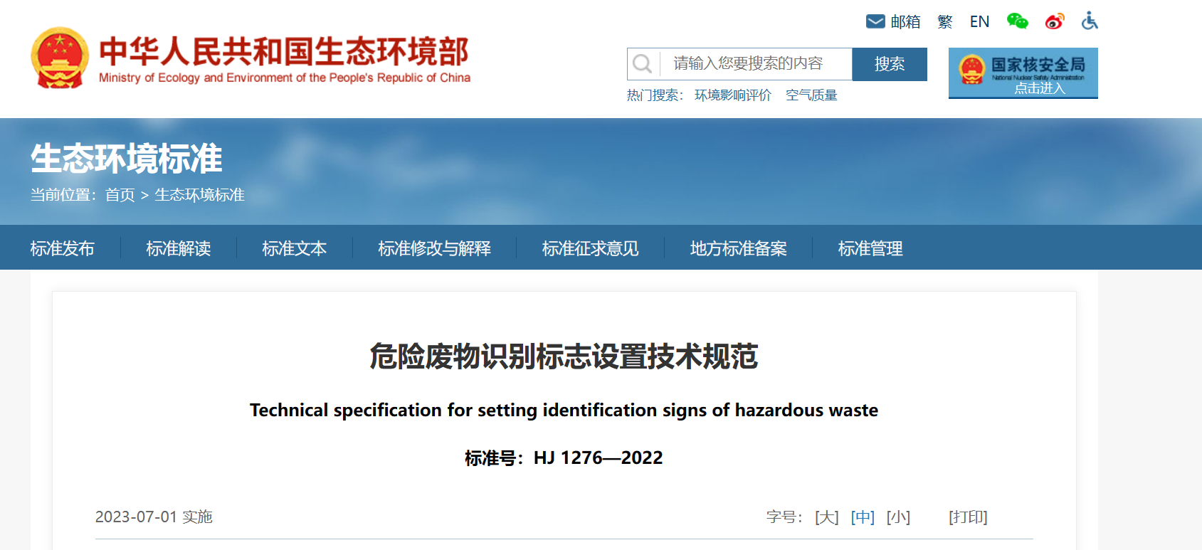 ?生態(tài)環(huán)境部:危險廢物識別標志設置技術規(guī)范