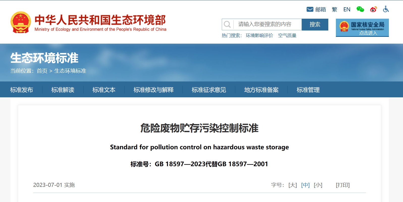 生態(tài)環(huán)境部:危險廢物貯存污染控制標準更新