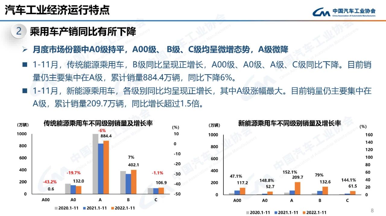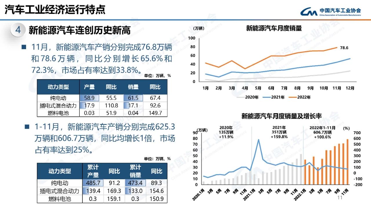 據(jù)中國汽車工業(yè)協(xié)會統(tǒng)計(jì)分析,2022年11月,汽車產(chǎn)銷略顯疲弱,環(huán)比、同比均呈現(xiàn)下降,下行趨勢明顯,總體表現(xiàn)不及預(yù)期。